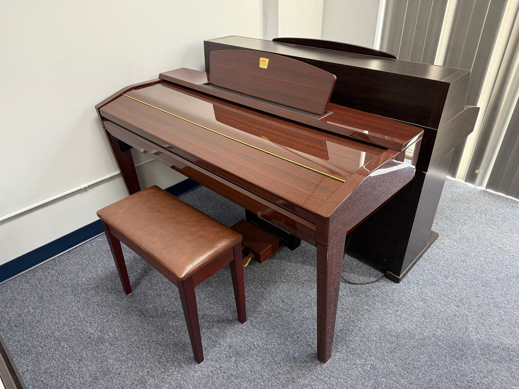 This Yamaha CVP-509 Clavinova Digital Piano in polished mahagony is a classic beauty. It's glossy finish offers a timeless allure enhancing any home decor.